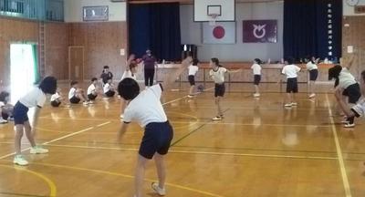 中学年は、公民館体育館でリズムダンスの授業でした。