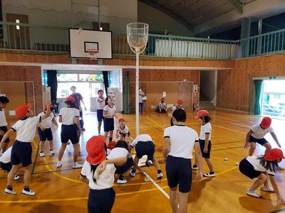 縦割り班に分かれ、短い時間ではありましたが、手軽にできるニュースポーツを体験し楽しむことができました。