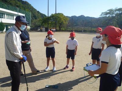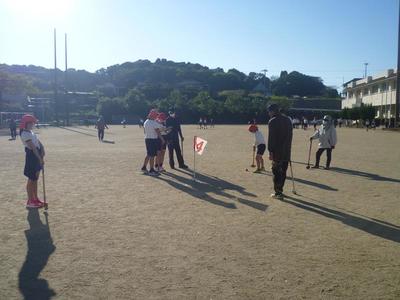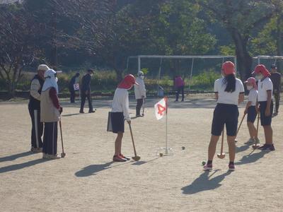 4~6年は、公民館グラウンドで老人会の方とグラウンドゴルフを楽しみました。