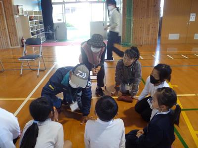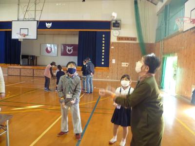 1~3年生は、公民館体育館で「昔遊び体験」を行いました。