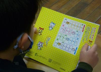 1年生の国語では、漢字ドリルが配られ、3学期に学習する漢字の読みに挑戦していました。