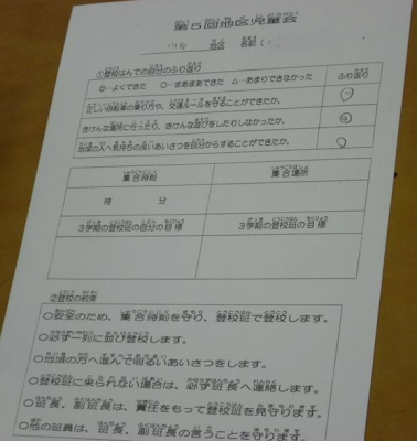 シートに記入しながら、冬休みの生活を振り返り、3学期の登校班の目標を決め、確認しました。