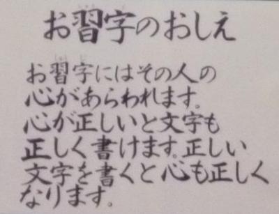 毛筆の時間に限らず、日々の文字を書くときも、「お習字のおしえ」のごとく、お手本をしっかり見て、正しい文字を書くことで正しい心を育てていってほしいですね。