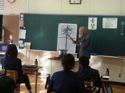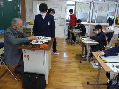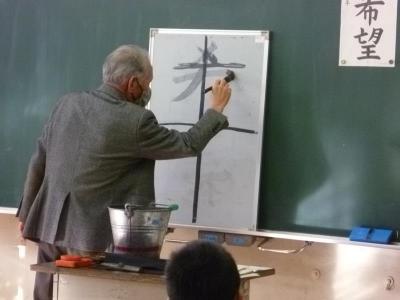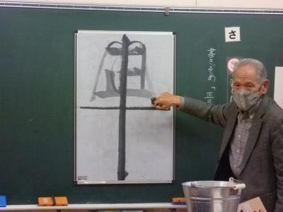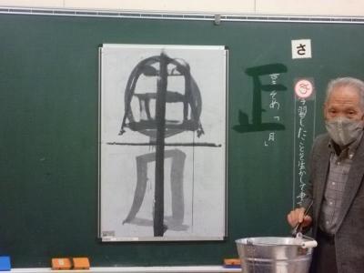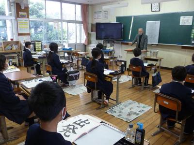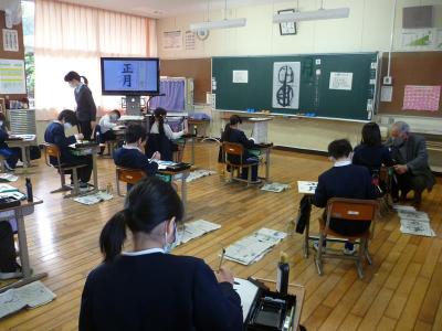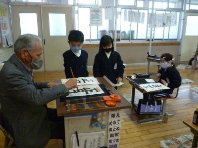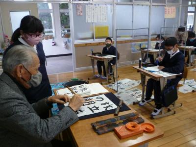 坂瀬川小でも、馬場先生を講師にお迎えし、3年生以上が毛筆の練習に取り組んでいます。