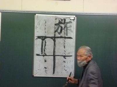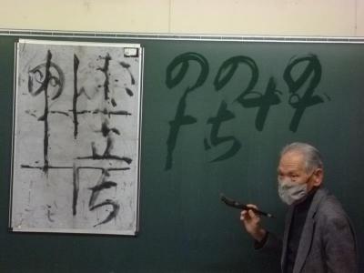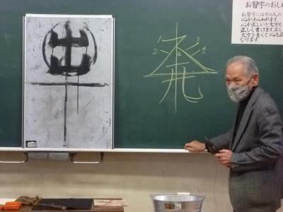 文字の中心を常に意識し、筆順や字の形に注意していくことを、水書板や黒板に書きながら説明してくださいました。