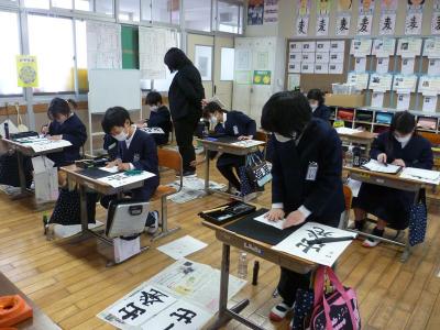 どの学年も、今年初めての毛筆指導だったので、今までの学習を生かした「書きぞめ」を行いました。