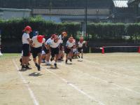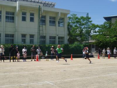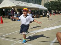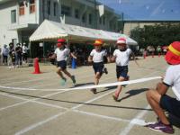 本年度の運動会は,新しい試みで「縦割り班対抗形式」をとっています。自分の班の勝利のために,どの子供も本気モードで力走しています。