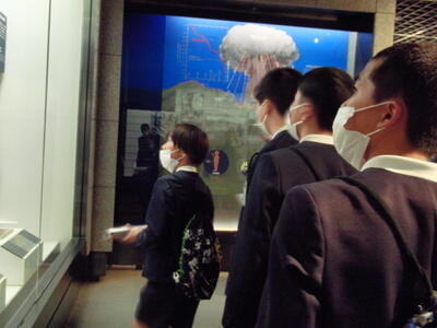 午前10時過ぎには長崎市内に到着し、最初の見学地である原爆資料館での学習を始めました。子どもたちは真剣に展示物や説明を読みながら、学びを進めていました。