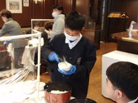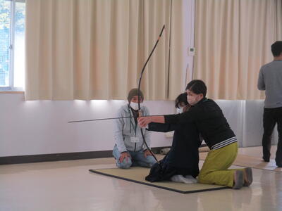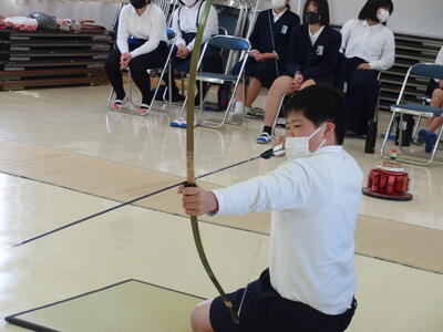 6年生は,「四半的」に挑戦しました。地域の方々から,弓を射つ前の礼儀作法から弓の構え方までの一つ一つの動作を丁寧に教えていただきました。矢がビシッと的に当たったときは,ギャラリーからも歓声が上がっていました。