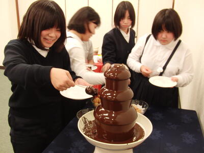 本日の活動を終え、午後5時30分に宿泊先に到着しました。そして、子どもたちが待ちに待っていた夕食の時間になりました。チョコレートタワーを楽しみにしていた子も多かったようです。出された食事を残すことなく、きれいに平らげました。笑顔で食事を楽しむ様子が見られ、食事を準備してくださるホテルの方々や添乗員さんも、子どもたちをうれしそうに見つめられていました。