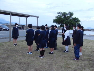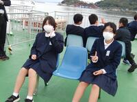 修学旅行も、いよいよ終わりに近付きました。バスで口之津港へ移動し、フェリーに乗船しました。フェリーでは、2日間の修学旅行の思い出を語りながら、この旅が終わってしまうことを寂しがる子どもたちがいました。鬼池港での解団式で、「この修学旅行は、多くの方々の支えがあったからこそ思い出に残るものとなりました。そのすべての人たちに感謝の気持ちを表してほしい。」と話しました。特に、家族の方々に対して、「ありがとう」が言える人であってほしいと思います。