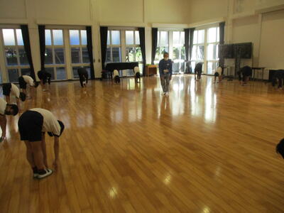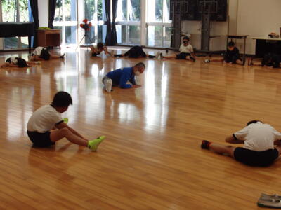 3・4年生は,「真向法体操」で地域の方々とふれあいました。講師の池田さんが教えたとおりに体操をしていくと,体が硬かった子供たちが自分でも「あっ」と驚くほど,みるみるうちに体が柔らかくなっていきました。
