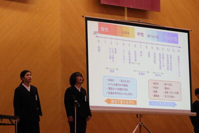 5年生は,「水俣に学ぶ肥後っ子教室」や地域の川の水質検査を通して分かったことや考えたことをニュース形式で発表しました。この発表の中で使用したプレゼンテーション資料は,5年生の子供たちで作成しました。