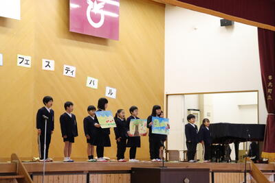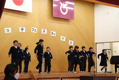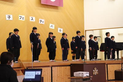 2月22日(火)に,本校の体育館で「坂っ子フェスティバル」を開催しました。本来ならば,保護者や地域の方々をお招きして,子供たちのこれまでの練習の成果や発表内容を見ていただくはずでした。しかし,「まん延防止等重点措置」の期間中の開催ということで,子供たちと職員のみでの開催となりました。