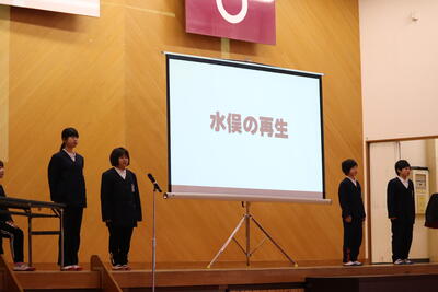 5年生は,「水俣に学ぶ肥後っ子教室」や地域の川の水質検査を通して分かったことや考えたことをニュース形式で発表しました。この発表の中で使用したプレゼンテーション資料は,5年生の子供たちで作成しました。