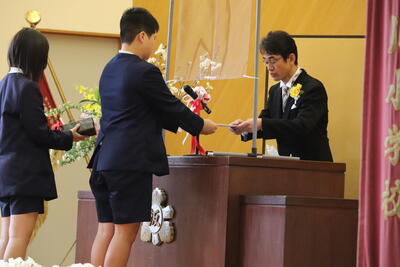 梶原校長から,一人一人に卒業証書が手渡されていきました。卒業証書を受け取った卒業生は,この後,保護者席に向かって歩き,保護者に卒業証書を手渡していきます。