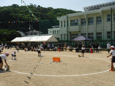 1~3年生の団体競技は玉入れ,4~6年生はコーン取り合戦を行いました。
