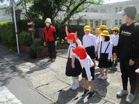 4月20日(木)地震津波避難訓練を行いました。緊急地震速報アラームが鳴った後、教頭先生より校内放送がされました。揺れがおさまり、教頭先生、担任の先生の指示のもと、一端児童玄関前に集合し、大師山へ避難を行いました。