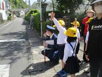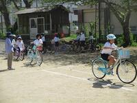 まず、天草警察署の方からお話を聞きました。「しっかり止まって安全確認をすることです」と教えてくださいました。その後、1・2年生は歩行練習、3~6年生までは自転車での走行練習を行いました。それぞれに指導員の方についていただき、練習を行いました。
