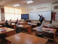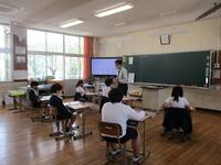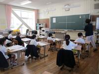 外国語科(英語)の学習を専科の先生と行います。この日は英語で自己紹介をしていました。
