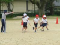 広い運動場でかけっこ(体育)