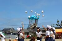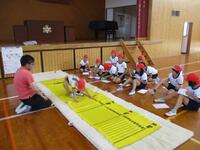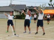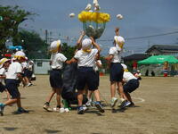 1・2・3年生による団体競技「なげて!なげて!なげて!」