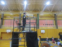 スタッフの皆さんによる前日からの会場設営によって,本校体育館は劇場のように様変わりしています。