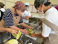 「私は、玉ねぎとキャベツを切りました。細切りなどをして、地域の人にも協力してもらいながらしました。けっこうおいしかったです。」