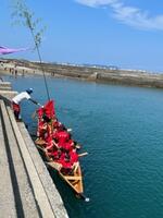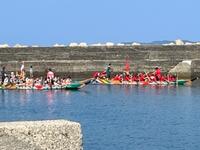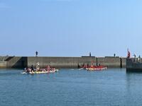 8月14日(月)坂瀬川漁港において、第26回坂瀬川ペーロン大会が行われました。これまで荒天や新型コロナウイルス感染症対策で実施ができず、5年ぶりの実施でした。天候もすばらしく、波も穏やかで、小路の港がとても活気づいていました。チームは地区対抗で行われ、6チームが参加しました。ペーロンの普及、お盆の帰省客と地域住民との触れあいの場という目的のもと、行き帰り500mにおいて熱戦が繰り広げられました。