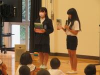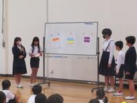 10月20日(金)児童集会があり、わくわく図書委員会の発表がありました。はじめに学年ごとにおすすめの本の紹介がありました。