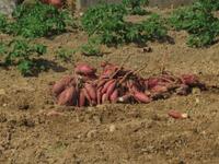 一方、2年生は支援ボランティアさんの畑のイモを掘らせていただきました。子供たちがとても喜んでいました。ありがとうございました。支援ボランティアさんに伺うと、やはり今年はあまり多くは取れなかったとのことでした。終わりには、こっぱ用に干してあるほしいももいただき、「あまくておいしいです」とうれしそうに話していました。