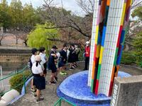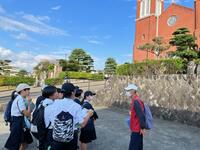 原爆落下中心地を含む浦上地区をフィールドワークしました。ボランティアガイドの方の説明にしっかりと耳を傾け,原子爆弾による被害の甚大さや平和の尊さを感じ取っていました。