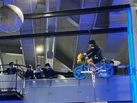 まずは、一輪車の乗り方や様々な技を披露してくださいました。一つ一つの技に「おー」「すげえ」と感想をもらしていました。世界チャンピオンの演技も見せていただきました。素晴らしかったです。フィギュアスケートを思わせる技もたくさんありました。