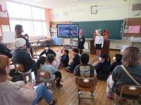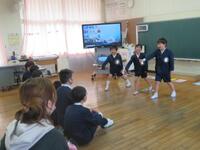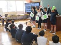 高学年は与えられたテーマから、発表内容を決め、他グループでは、3年生は「味千&かずま園のいいとこ見つけた」「坂瀬川のししまい・舞も見せちゃうよ」、4年生は「伝統工芸のよさ・季節と生き物」、5年生は「古典・竹取物語」「農業について知ろう」、6年生は「書道パフォーマンス」「みんな大好きな『お金』について」を発表しました。
