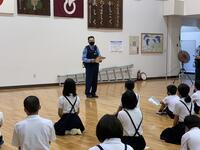 苓北町交番の方からは、子供たちに怖い目に合わないための合い言葉「いかのおすし」を使って、丁寧にご指導いただきました。ありがとうございました。