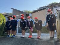 坂瀬川小学校で学べることへの感謝の気持ちを表す「校門一礼」の取組も、本校の特色ある取組として定着してきました。一昨年度、そして昨年度の6年生が学校のリーダーとして示してくれていた姿は、本年度の6年生にもしっかりと受け継がれており、他学年の見本となるようあいさつをしてくれています。登校班の上学年を見ながら、1年生も出来るようになりました。
