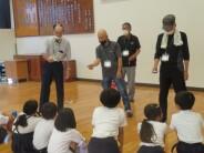 6月13日(木)6人の地域の方にご来校いただき、こままわし体験を行いました。地域の方はさすが名人さんです。子供たちの目の前で、簡単そうにこまをまわされます。
