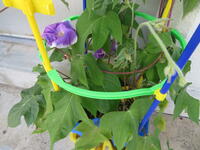 1年生の朝顔もきれいに咲いています。ちょっと暑さにまいっているようです。