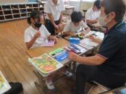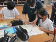 5年生の家庭科の学習がありました。手縫いのが句集で、縫い糸と針を使います。第1時の今回は、玉結びと玉留め、並縫いに挑戦しました。学習支援ボランティアにもご協力いただきました。糸がうまくよれなかったり、糸をかけることができなかったり、糸がすぐ針からぬけたり、悪戦苦闘です。ボランティアさんがやさしく教えてくださっている中、少しずつコツをつかんだようでした。