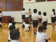 はじめに、1学期の反省と夏休みに頑張ることの発表を学年の代表児童が行いました。頑張ったことは、運動会、漢字・計算大会、水泳、田植え体験などをあげていました。