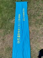 実行委員会からいただいた旗です。本当は笹にくくってあるのですが、写りが悪かったので、地面に置きました。