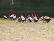 先週の2日間、児童会の企画で「草抜き合戦」が行われました。朝の時間に縦割り班対抗でどれだけ運動場の草を抜くことができるかを競うものです。