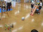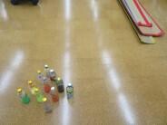 1つ目のコーナーは、ボーリング。ピンのペットボトルには回りに飾りを付けたり、中には色を付けた水を入れて分かりやすくしたり、倒れたら音が鳴ったりするようなしかけがありました。