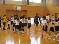 続いて、全体ゲーム「貨物列車」を行いました。3回あったのですが、それぞれの回で違うチャンピオンが誕生しました。
