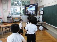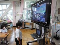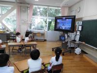 1年生が、町内の富岡小の1年生とリモートで交流しました。このように距離の離れた学校の子どもたちと授業で交流できるようになると、学習の幅がこれまで以上に広がってくることでしょう。私が学級担任をしていた頃には考えられなかった学習も、これからは可能になってくることでしょう。