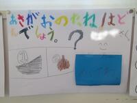 1年生教室前に1年生からのクイズが出されています。一生懸命育てた朝顔のクイズです。わかりますか?