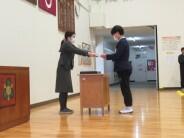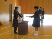 まず、修了証の授与です。1学年ずつ代表の人に手渡ししました。