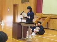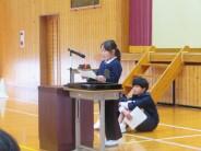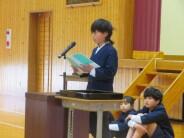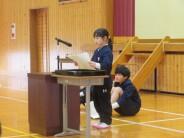 次に、各学年の代表による3学期についての発表がありました。みんな目標を持って、その目標を達成することができましたと発表してくれました。来年は、高学年になるので、もっと頑張りたいという気持ちを話してくれました。頼もしいです。