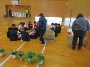 はじめに、6年生を送る会を体育館で行いました。各学年から6年生へ向けての発表がありました。クイズあり、じゃんけんあり、クラスで決めた出し物を披露しました。