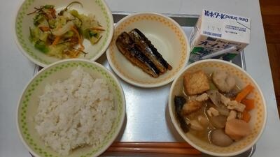NEW 1月29日(木)麦ごはん、みそおでん、さんまのみぞれ煮、はくさいの酢漬け、牛乳